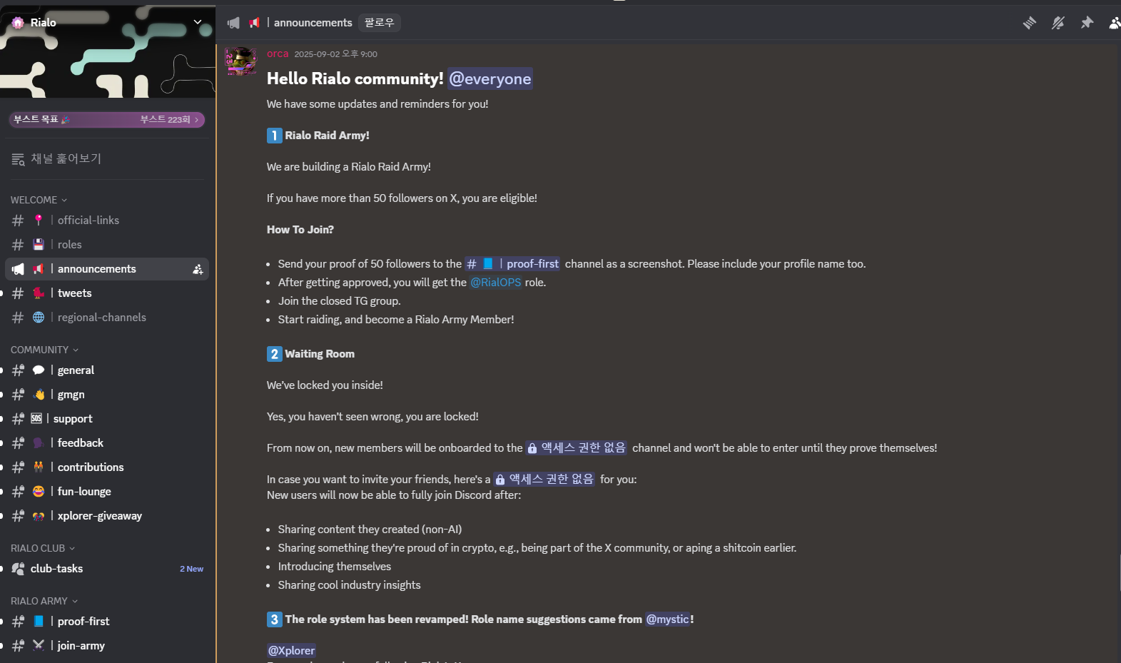 - Rialo Club Member : club-tasks에서 최고의 콘텐츠 제작자(매주 화요일 부여)